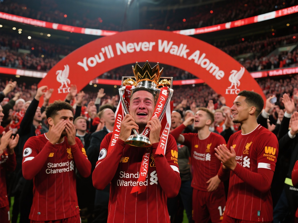 英超夺冠!6万人齐唱永不独行,利物浦众将泪洒赛场